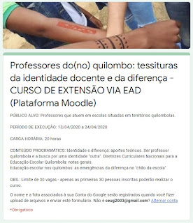 atuem em escolas situadas em territórios quilombolas. Clique AQUI para se