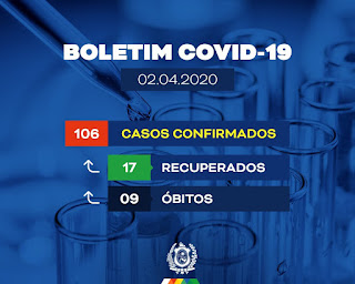 contabiliza 106 diagnósticos confirmados do Novo Coronavírus,
