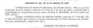 Luiz Pontes, que estava no cargo há dois anos. A Portaria nº 435/2020-INSS, foi