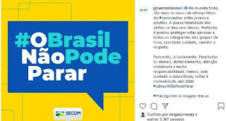 a solicitação de reabertura. O pronunciamento do Presidente Jair Bolsonaro na última terça-feira, dia 24, também vem servindo como pressão para que Prefeitos e Governadores afrouxem as medidas de contensão da proliferação do Coronavírus.