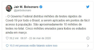 para todos os Estados ainda em março”. Na postagem, o presidente diz que