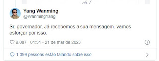 embaixador da China, em rede social, respondeu à solicitação do grupo dizendo