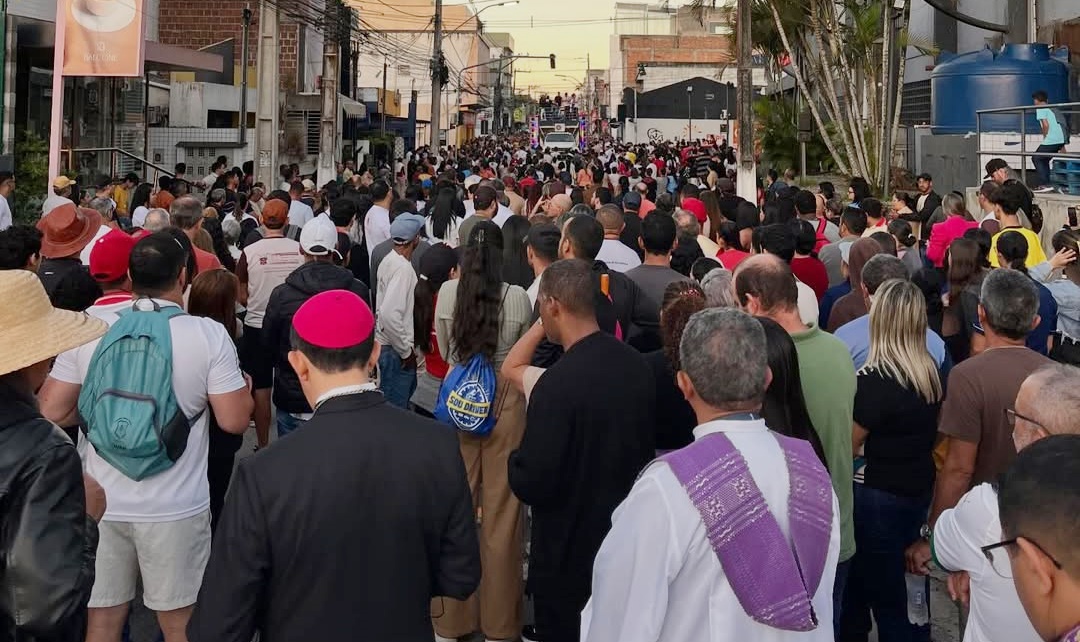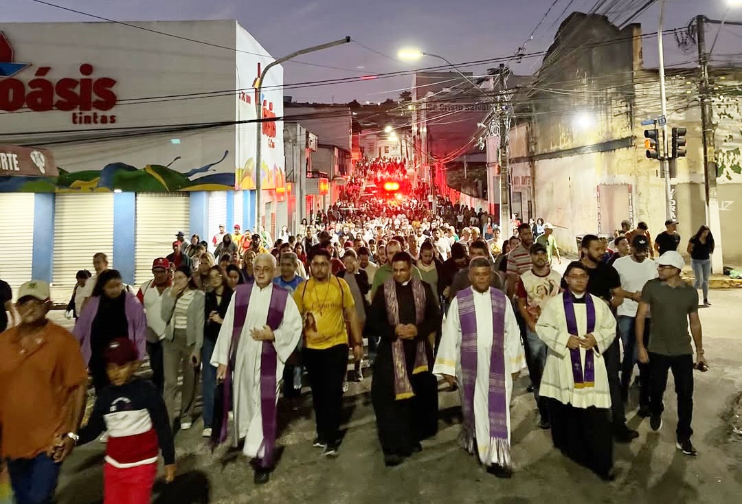 Ao longo do percurso, os participantes vivenciaram a Via Sacra, meditando as estações que recordam o caminho de Jesus Cristo até a Crucificação. Em clima de fé e recolhimento, os fiéis uniram suas intenções pessoais ao sofrimento de Cristo, em um momento de oração coletiva e reflexão.