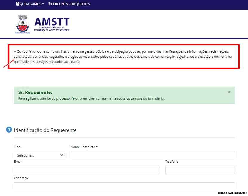 um canal de Ouvidoria, que segundo o portal: https://www.amstt.pe.gov.br/v2/ouvidoria.php