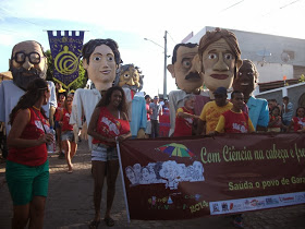 marcado pela participação de bonecos gigantes em homenagens a cientistas, como: