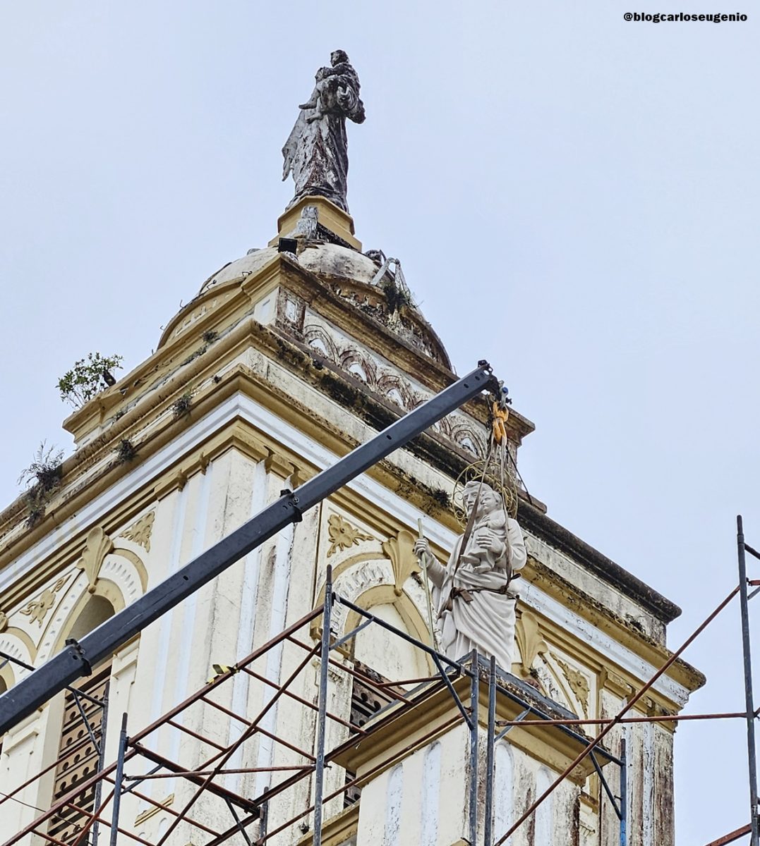 Quem passa pelo Centro de Garanhuns, já percebe mudanças na fachada da Catedral de Santo Antônio. É que imagens sacras estão sendo elevadas nas torres do templo, marcando uma das etapas finais da reforma.