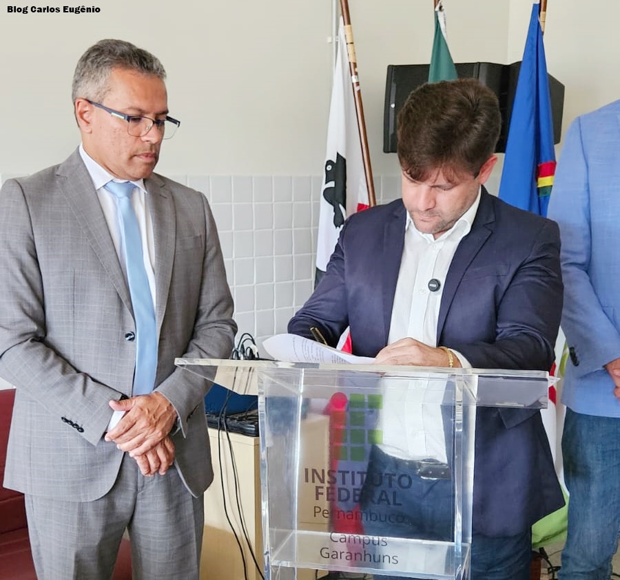 A cerimônia de assinatura das Ordem de Serviços contou com a presença do reitor do IFPE, José Carlos de Sá; do diretor-geral do Campus Garanhuns, Roberto Amaral, e do secretário parlamentar Gersinho Filho, representante do deputado Federal Fernando Rodolfo, responsável pela destinação dos recursos.