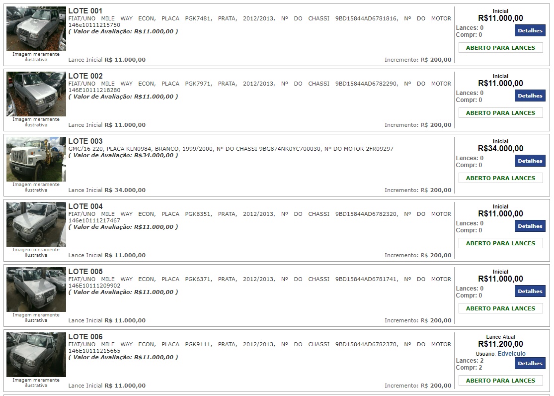 leiloados é de veículos que faziam parte da frota da Compesa: 19 carros da