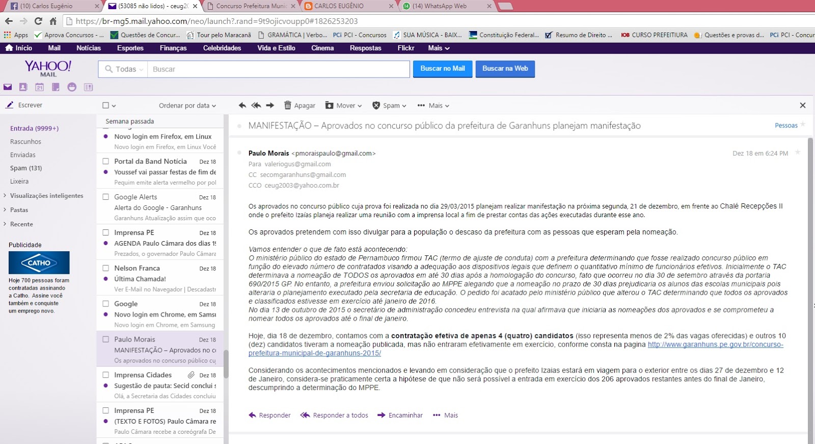 Morais, os aprovados no concurso público planejam realizar uma manifestação logo