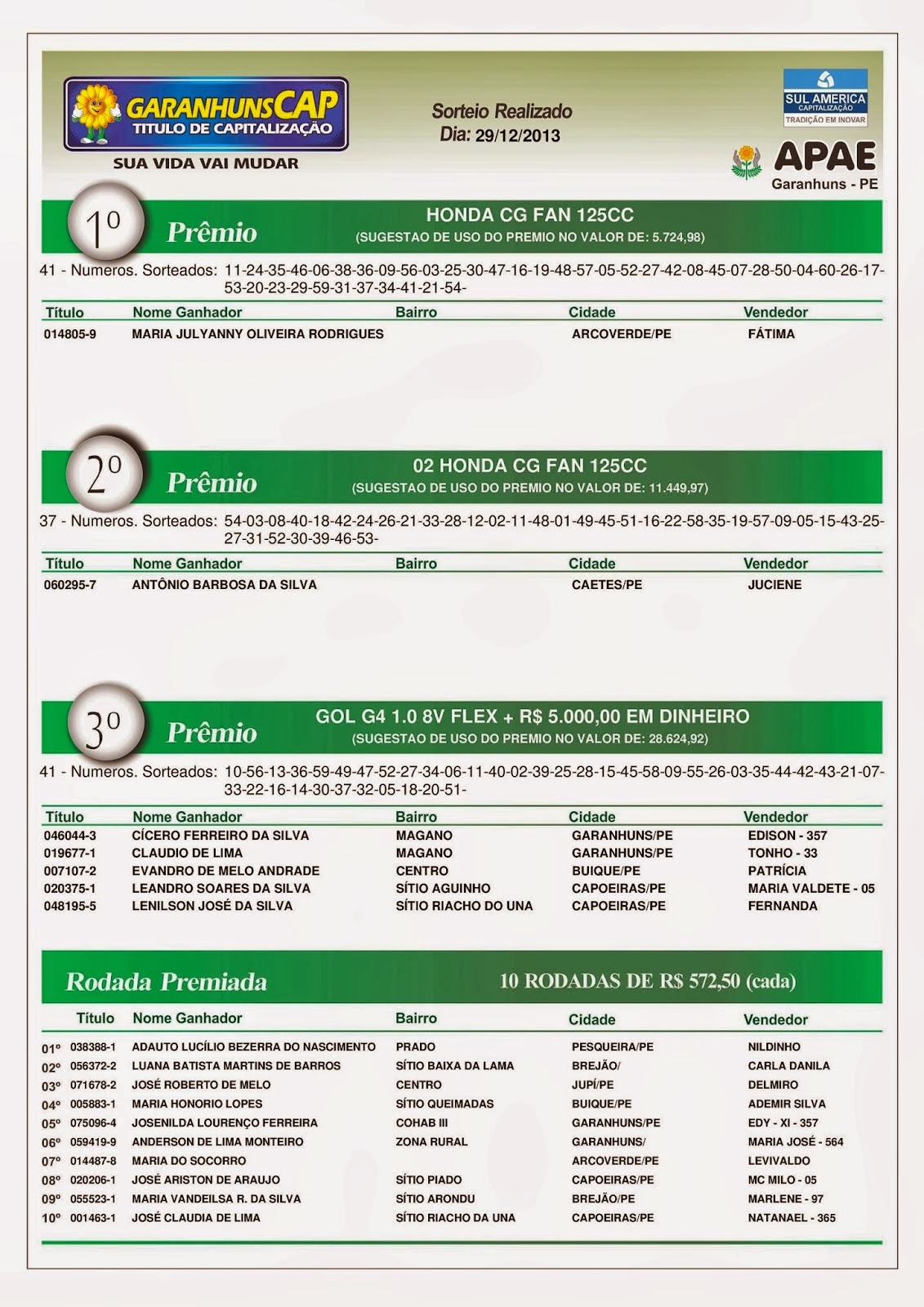 CONFIRA OS GANHADORES DO GARANHUNS CAP DESTE DOMINGO