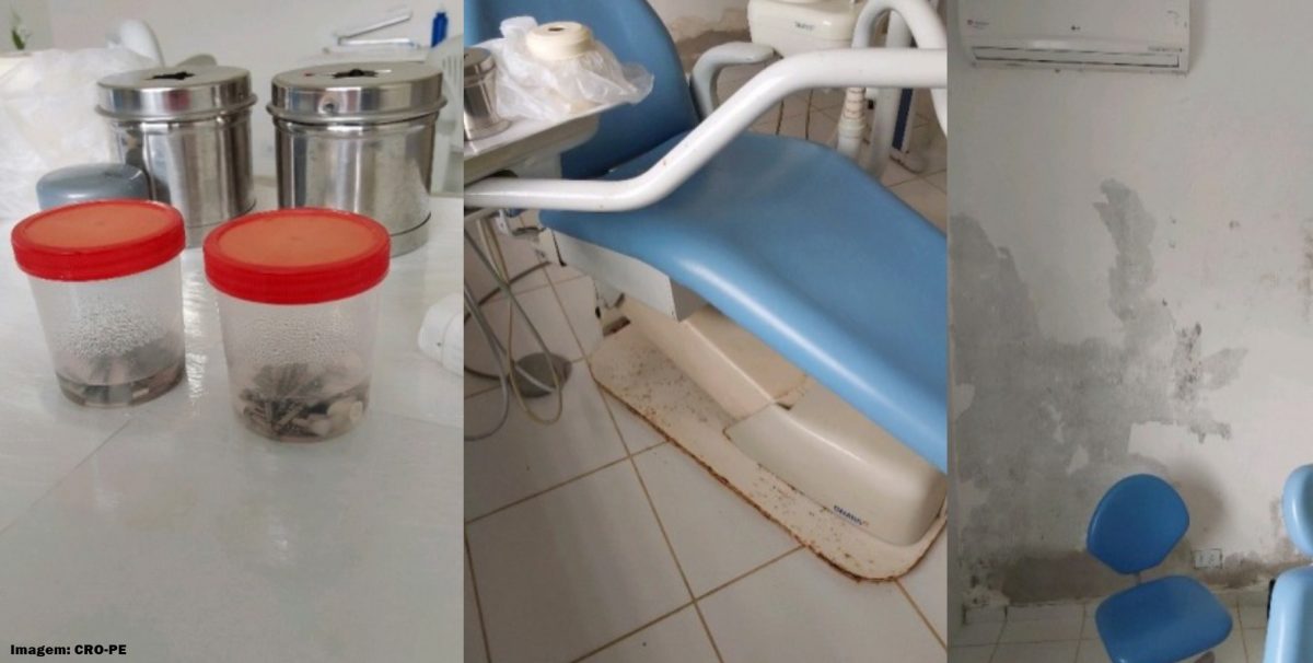 Durante fiscalização de rotina, a equipe do Conselho identificou a ausência de autoclave, que são equipamento indispensável para a esterilização de instrumentais, além de problemas estruturais significativos, como: paredes com mofo, infiltrações e áreas com reboco exposto, evidenciando, segundo o CRO-PE, condições inadequadas de funcionamento.