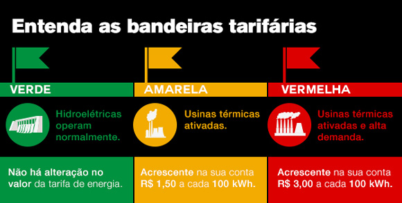 cada 100 kilowattshora consumidos) e a vermelha (que adiciona R$ 4,5 a cada