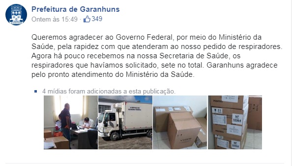 respiradores que havíamos solicitado, sete no total. Garanhuns agradece pelo