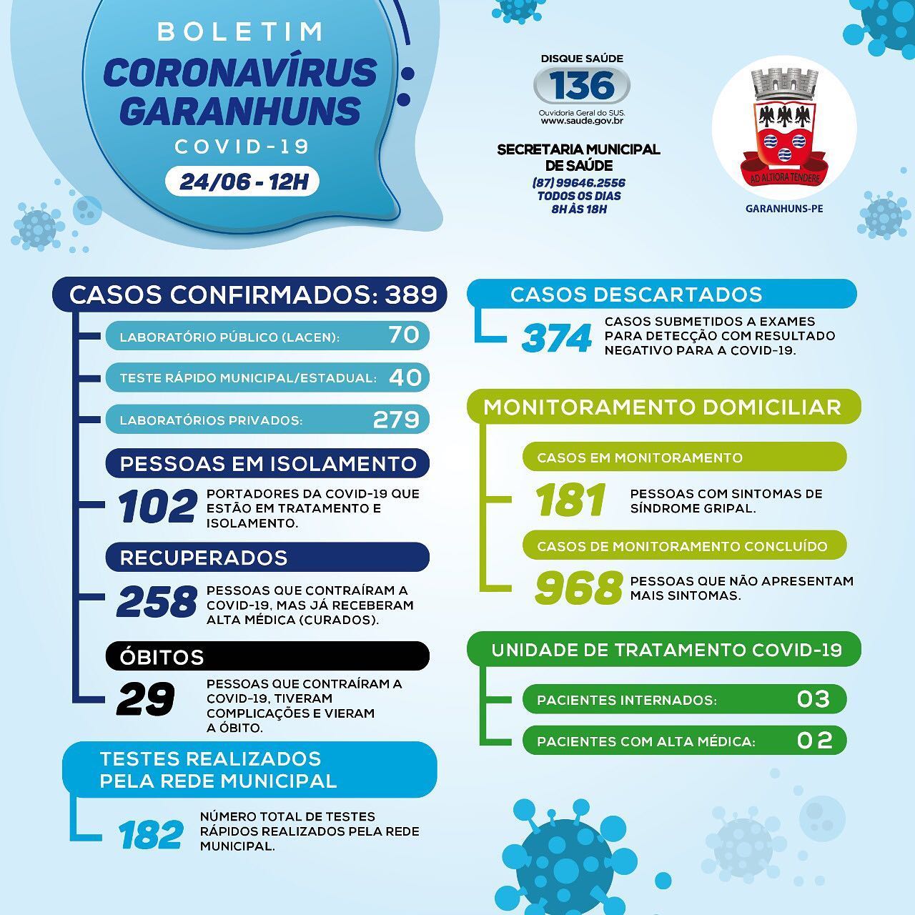 a registrar 389 casos confirmados de COVID-19. Deste total 29 pessoas vieram a