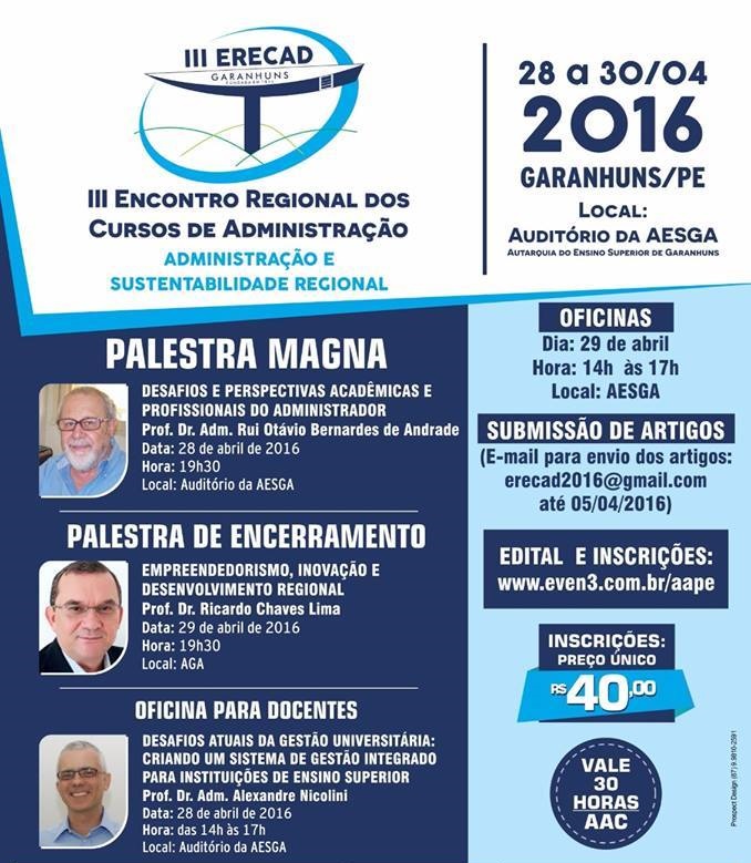 dos Cursos de Administração – ERECAD, realizado pela Autarquia do Ensino