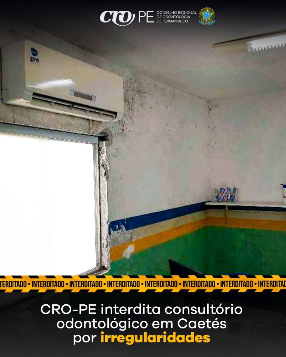 O Conselho Regional de Odontologia de Pernambuco (CRO-PE) interditou um consultório odontológico instalado na Unidade Básica de Saúde (UBS) do Quati, no município de Caetés, após fiscalização identificar irregularidades sanitárias consideradas de risco para pacientes e profissionais.