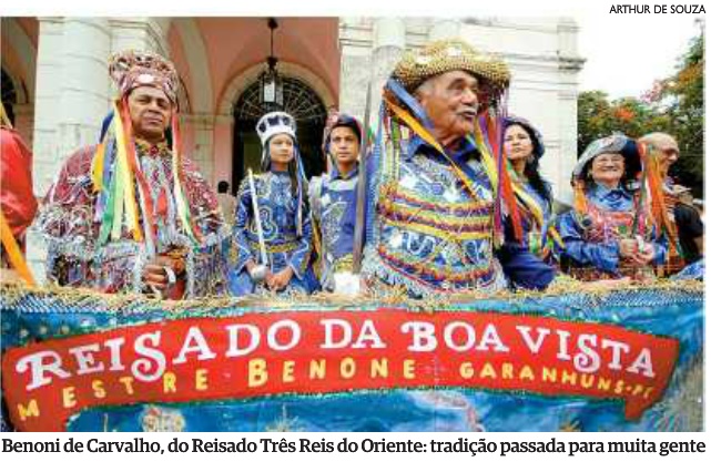 frente do Reisado Os Três Reis do Oriente, um dos mais antigos de Pernambuco,