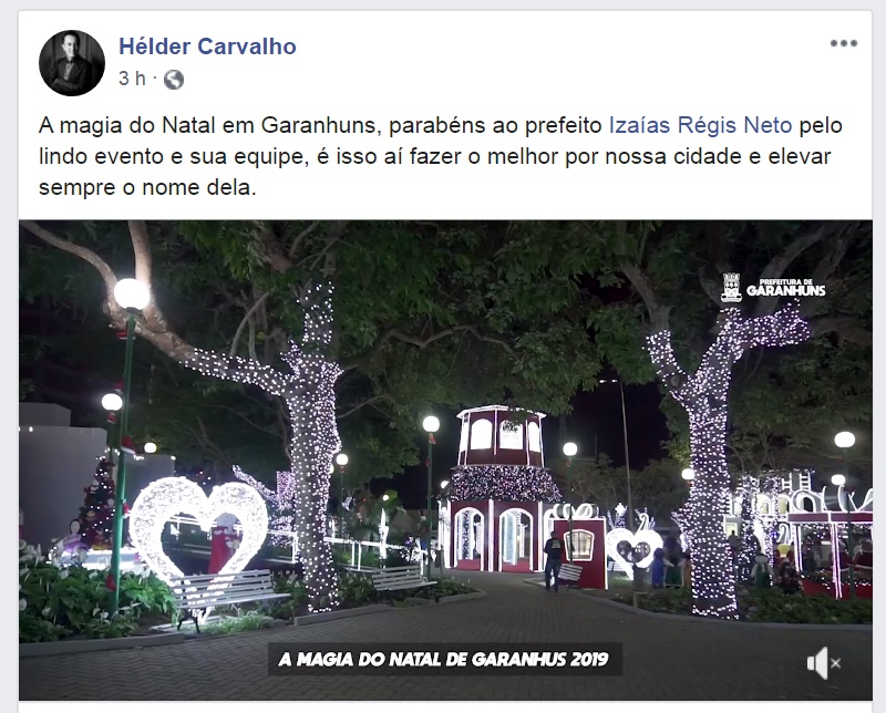 Garanhuns postou no facebook um elogio ao Prefeito Izaías Régis pela realização