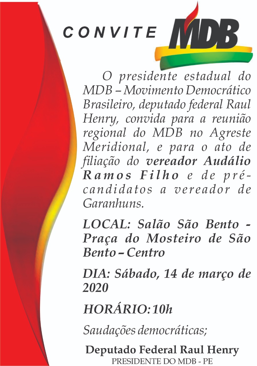 comandando em nível estadual pelo deputado Federal Raul Henry, promoverá nesse