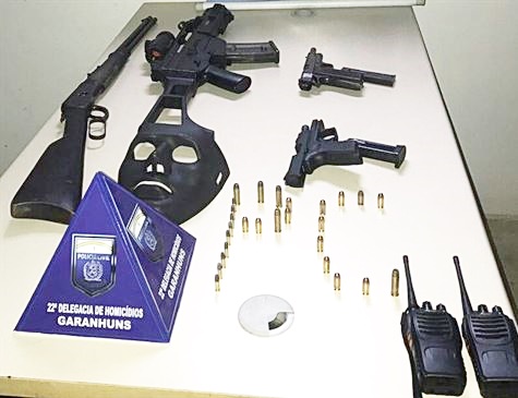 apreendidas foram duas pistolas e um rifle, além de um simulacro de