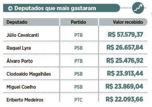mais fez uso do benefício foi Júlio Cavalcanti (PTB), cujas viagens custaram R$