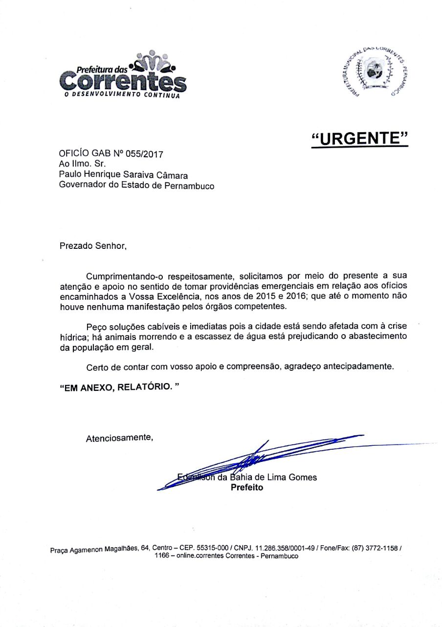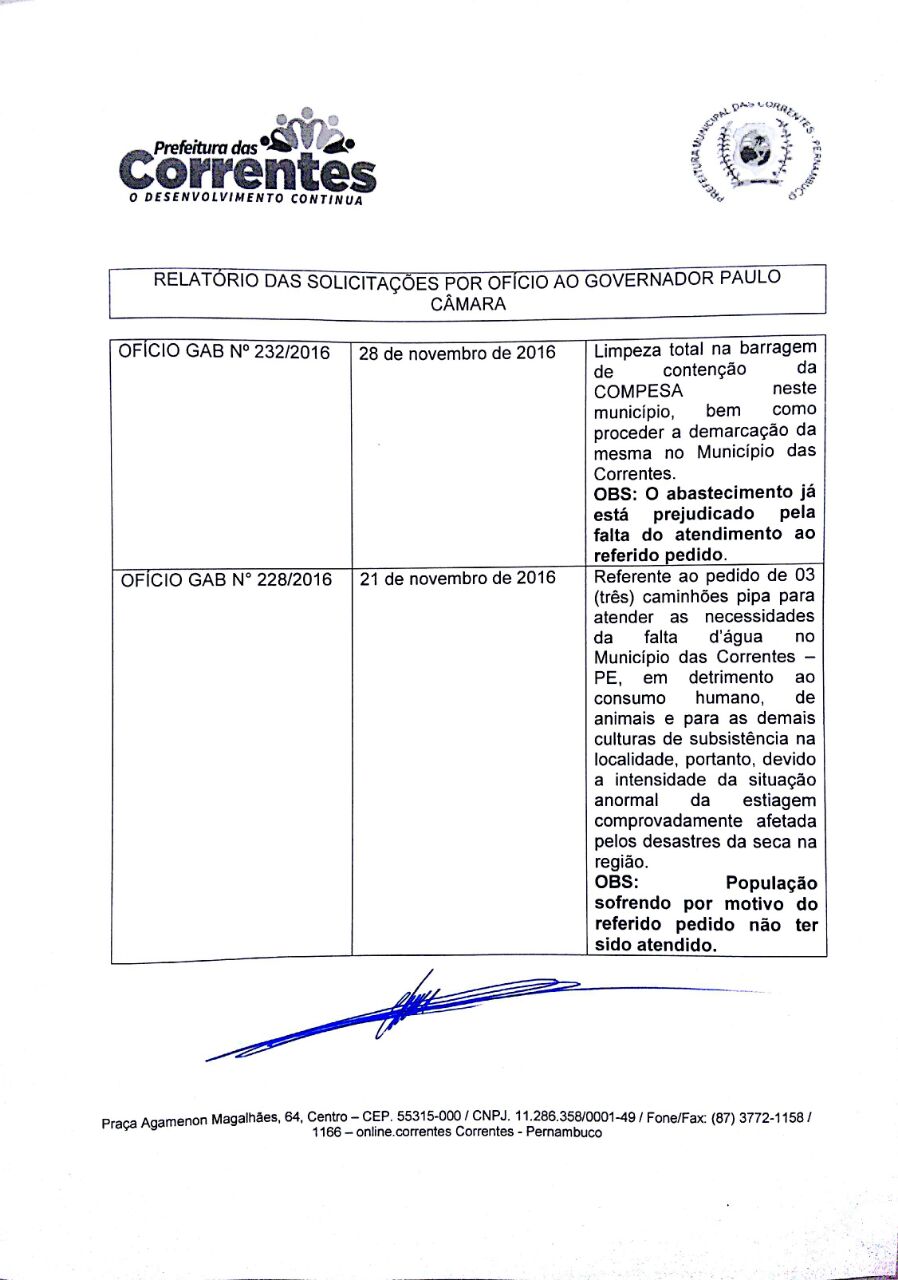 população pode contar com o empenho e apoio do Prefeito. Também pedimos o apoio