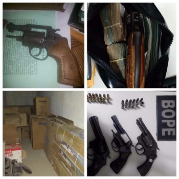 algumas toneladas de cargas roubadas, muitas armas e munições de vários