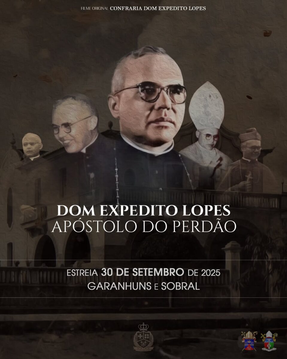 O filme “Dom Expedito Lopes – Apóstolo do Perdão” será exibido pela primeira vez nesta terça-feira, dia 30, em uma apresentação especial que acontece simultaneamente em Garanhuns e em Sobral-CE. A obra conta a trajetória de Dom Francisco Expedito Lopes, 5º bispo da Diocese de Garanhuns, conhecido por sua vida dedicada aos pobres, pela fundação de obras sociais e, principalmente, pelo ato de perdoar o próprio assassino momentos antes de morrer.