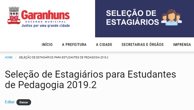 Garanhuns vai selecionar estagiários de Licenciatura em Pedagogia para atuar