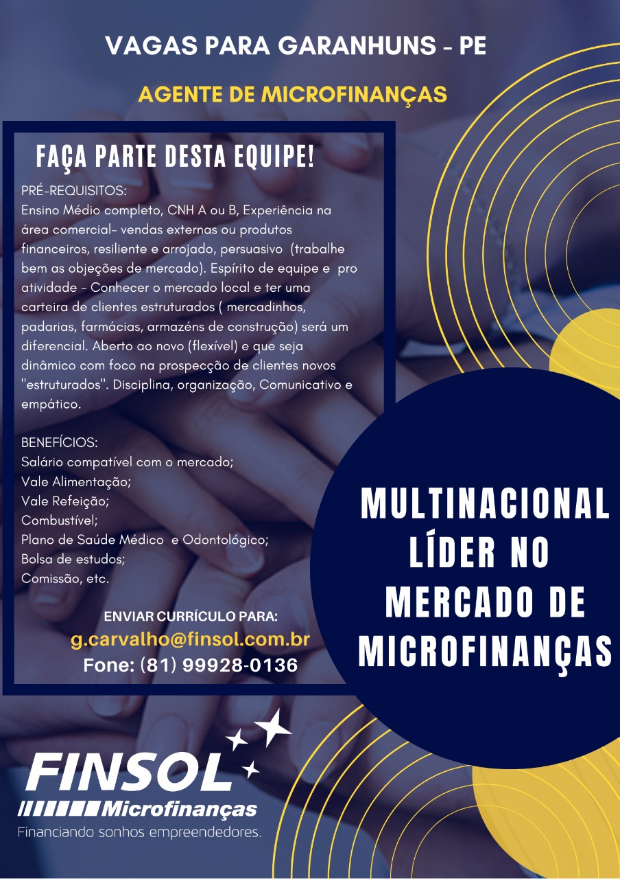 empresa FINSOL Microfinanças, com sede aqui em Garanhuns, está ofertando