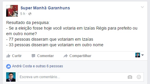 compromisso com todos!”, publicou Izaías em seus perfis no facebook,