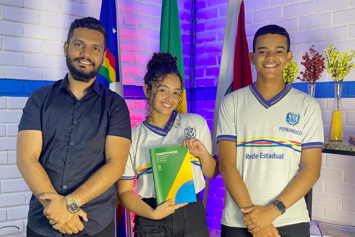 Dois estudantes da Escola de Referência em Ensino Médio (EREM) Coronel José Abílio, do município de Bom Conselho, protagonizaram um ato simbólico e cívico em homenagem ao aniversário da Constituição Federal de 1988. Ana Beatryz e Natanael Cabral, ambos do 1º ano do Ensino Médio, participaram, ao lado do professor de Língua Portuguesa, Luide Albuquerque, da Maratona de Leitura da Constituição Federal, transmitida ao vivo pelo YouTube.