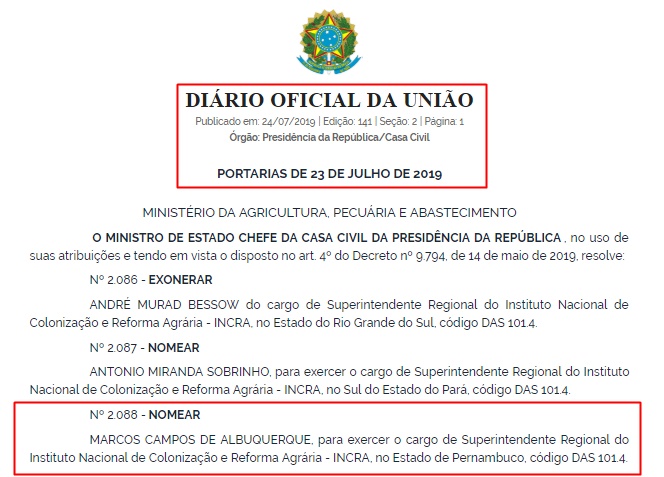 nomeação foi publicada no Diário Oficial da União desta quarta-feira, dia 24.