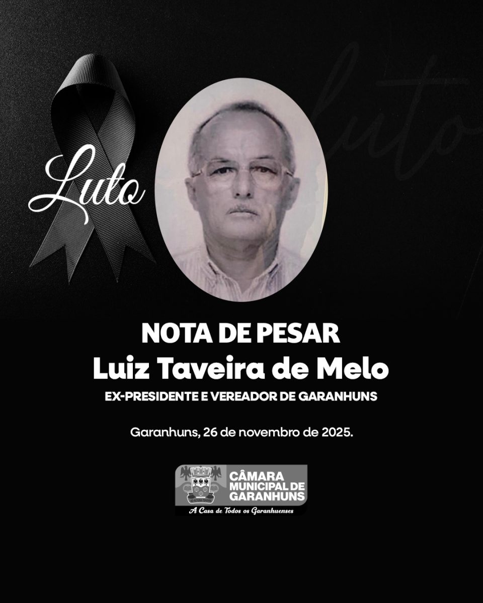 Garanhuns perdeu, nesta quarta-feira, dia 26, uma de suas figuras políticas mais tradicionais. Faleceu aos 88 anos o Ex-vereador e Ex-presidente da Câmara Municipal, Luiz Taveira de Melo, que estava internado no Hospital Regional Dom Moura. A informação foi confirmada por familiares e pelo Legislativo Garanhuense.