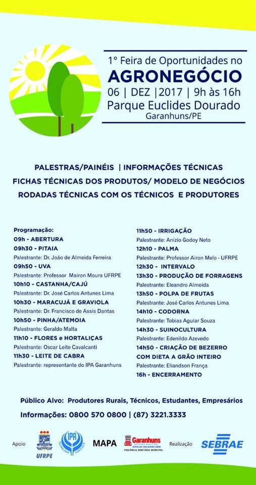 Oportunidades no Agronegócio é uma realização do Sebrae/PE com o apoio da