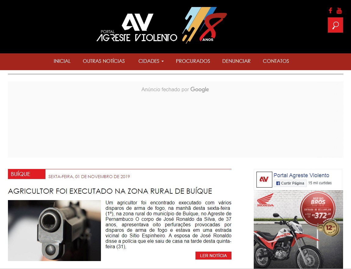 a Região. Quando o fato acontece o Agreste Violento vai lá e mostra a verdadeira