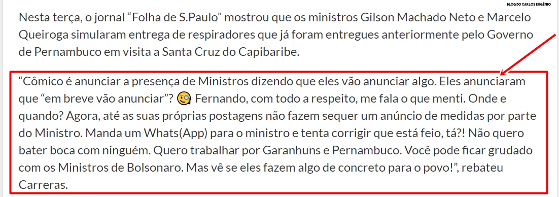 alegando que o secretário de Saúde de Pernambuco, André Longo, não teria ido ao