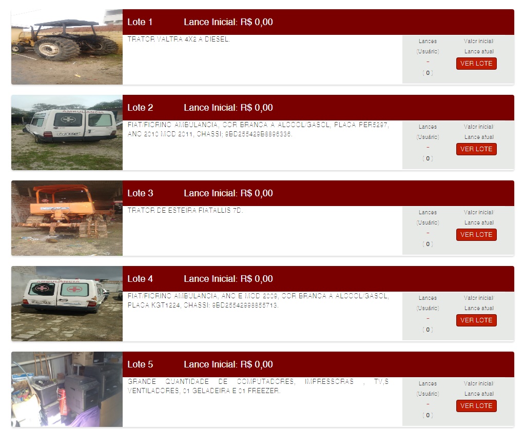 compostos por equipamentos odontológicos, veículos e máquinas. O leilão