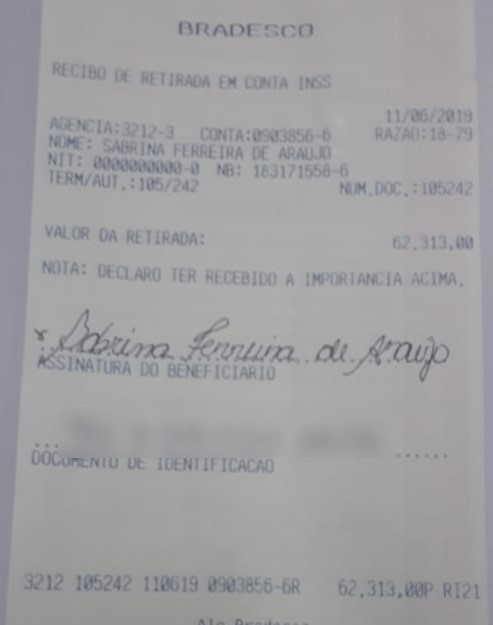 depositado na conta de outra pessoa, que providenciou a documentação, para