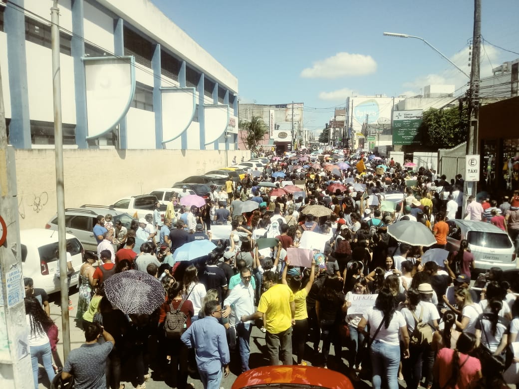 Entre Professores, Alunos, Vereadores e Representantes de Partidos e Associações, cerca de 3 mil pessoas, segundo dados da Polícia Militar, participam, na manhã de hoje, dia 15, do movimento em prol da Educação e contra
