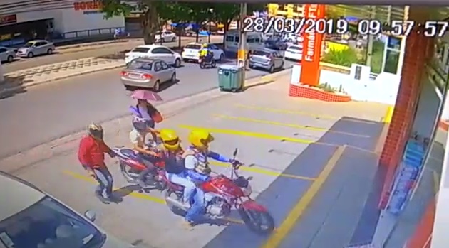 pacote que estava com a Vítima. A ação foi captada pelas câmeras de