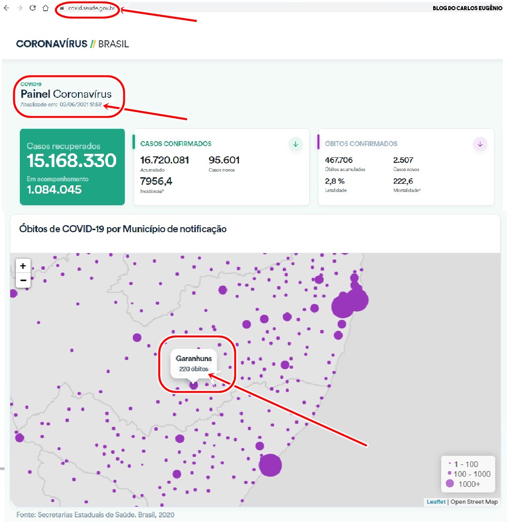 Coronavírus, mantido pelo Ministério da Saúde (https://covid.saude.gov.br/), Garanhuns