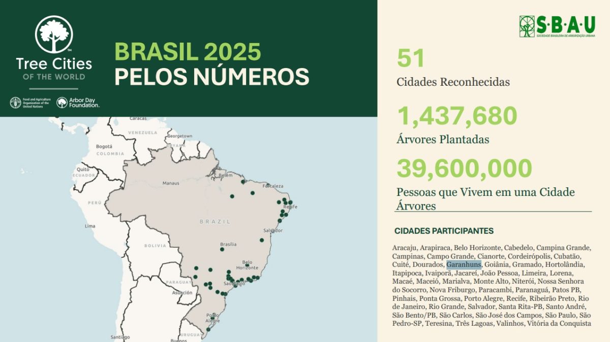 O município de Garanhuns passou a integrar um seleto grupo de cidades reconhecidas internacionalmente por boas práticas ambientais ao receber o título “Tree Cities of the World” (Cidades Árvores do Mundo). A certificação é concedida pela Arbor Day Foundation, em parceria com a Organização das Nações Unidas para Alimentação e Agricultura (FAO).