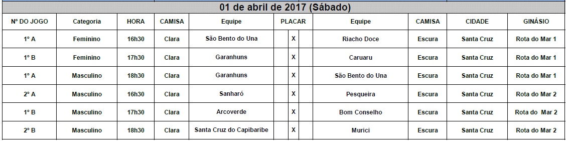 Caruaru. No masculino, a divisão também ficou em dois grupos, sendo um com cinco