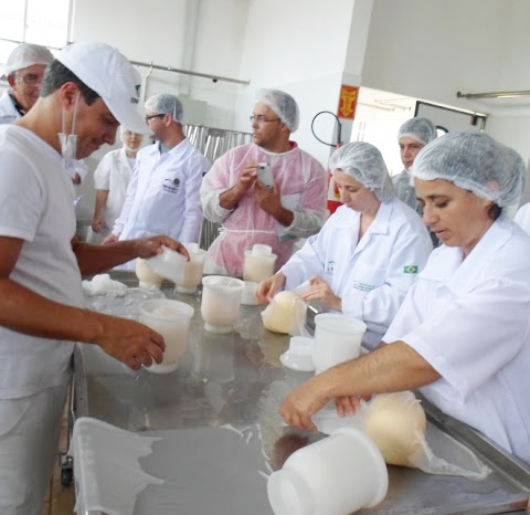 parmesão. As aulas teóricas e práticas aconteceram no Hall de Fabricação do CT Laticínios.