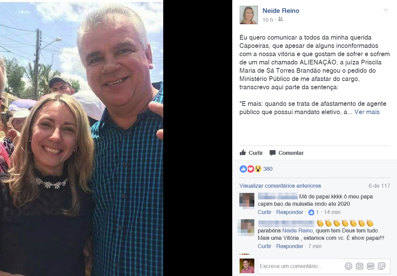 do Ministério Público de Pernambuco e não afastará a Prefeita de Capoeiras, Neide
