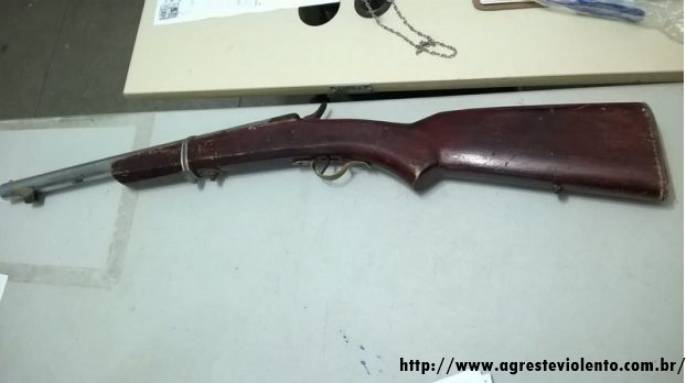 uma espingarda do tipo “soca-soca” escondida atrás de um sofá. Ele,