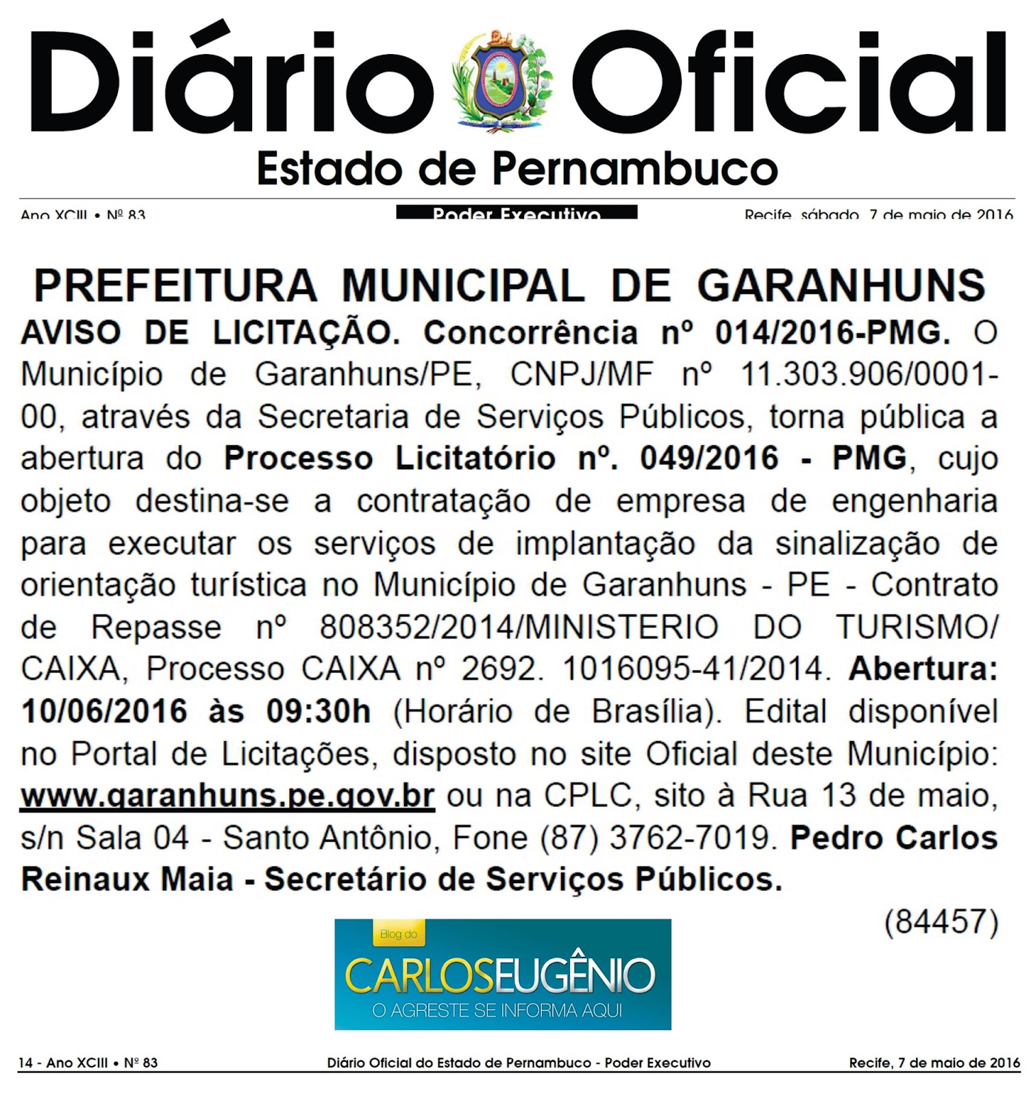nº. 046/2016 – PMG, previsto para acontecer no próximo dia 9 de junho, deverá