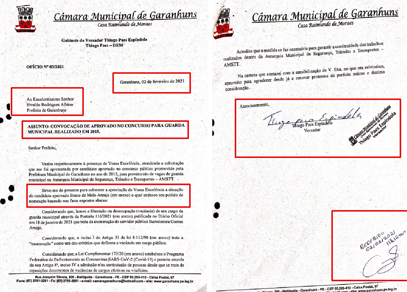 Foram convocados os candidatos Bruno de Melo Araújo e Hermes