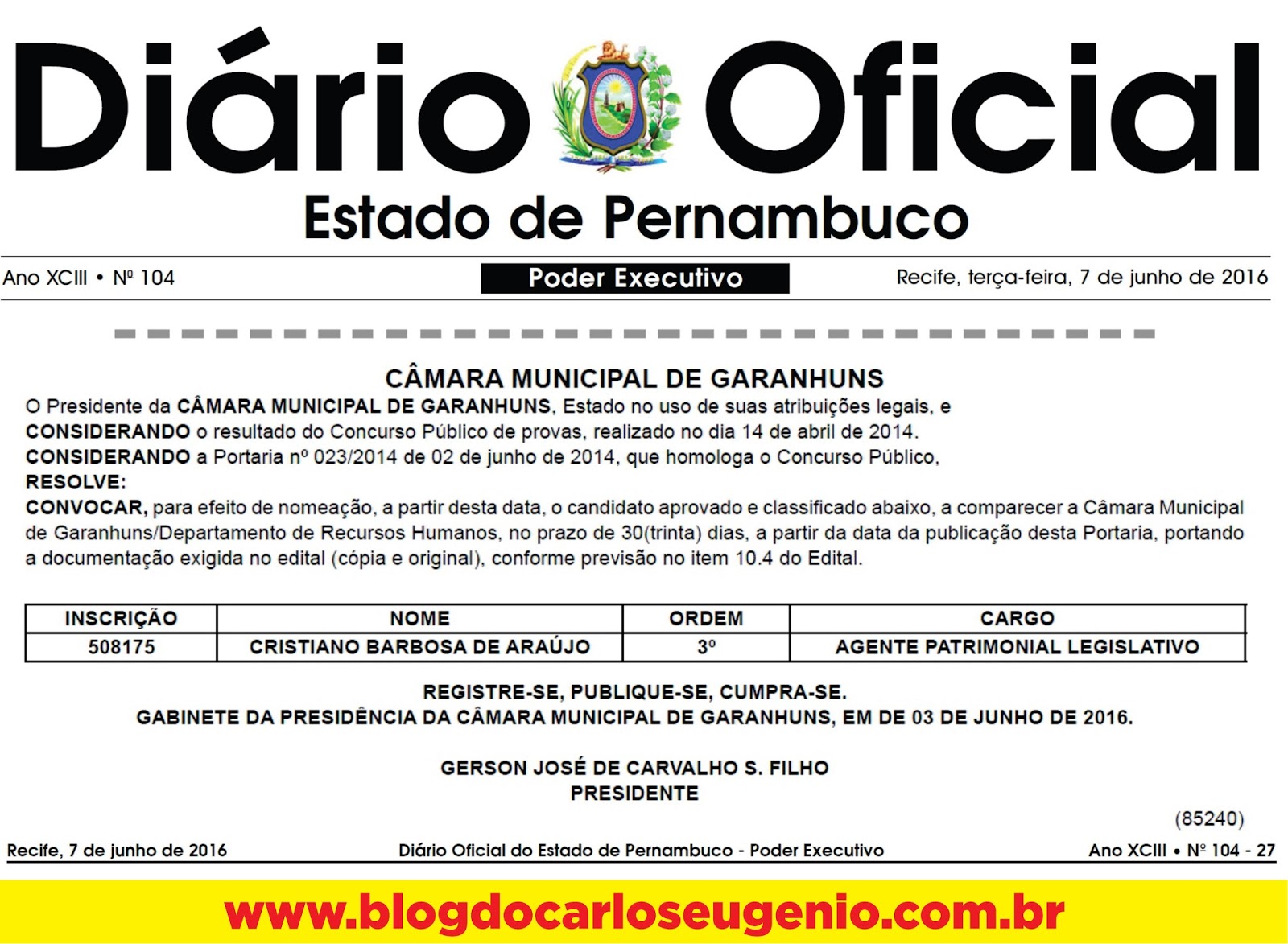 Câmara de Garanhuns num prazo de trinta com a finalidade de ser nomeado como